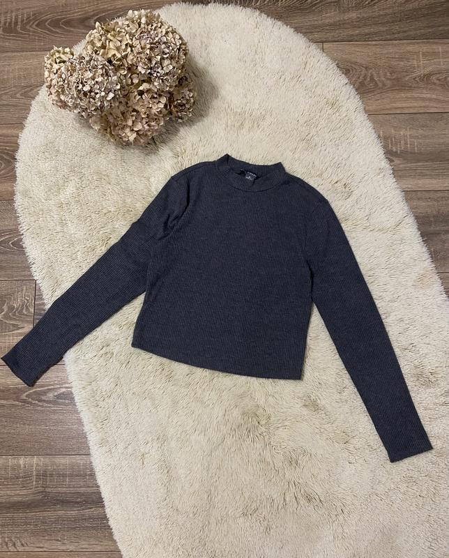Серо темная базовая кофта в рубчик размером S, состав полиэстер и вискоза, длина от плеча 46см., полуобхват груди 40см., низ 39см., длина рукава от горловины 66см. Стан идеален.