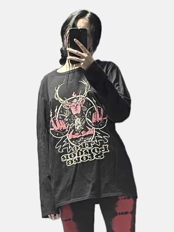 Ткань очень мягкая( хлопок) Размер: l, одетая на s/m, на меньшие размеры в виде оверсайза длина: 73 ширина по плечам (полуобхват): 43 ширина по талии (полуобхват): 51 Стан: нова 99 грн-комиксия платформы в инсталграме g0th_closet больше вещей🥀 killstar tripp aderlass devil fashion poizen spiral hell bunny phaze vixxsin banned new rock готика