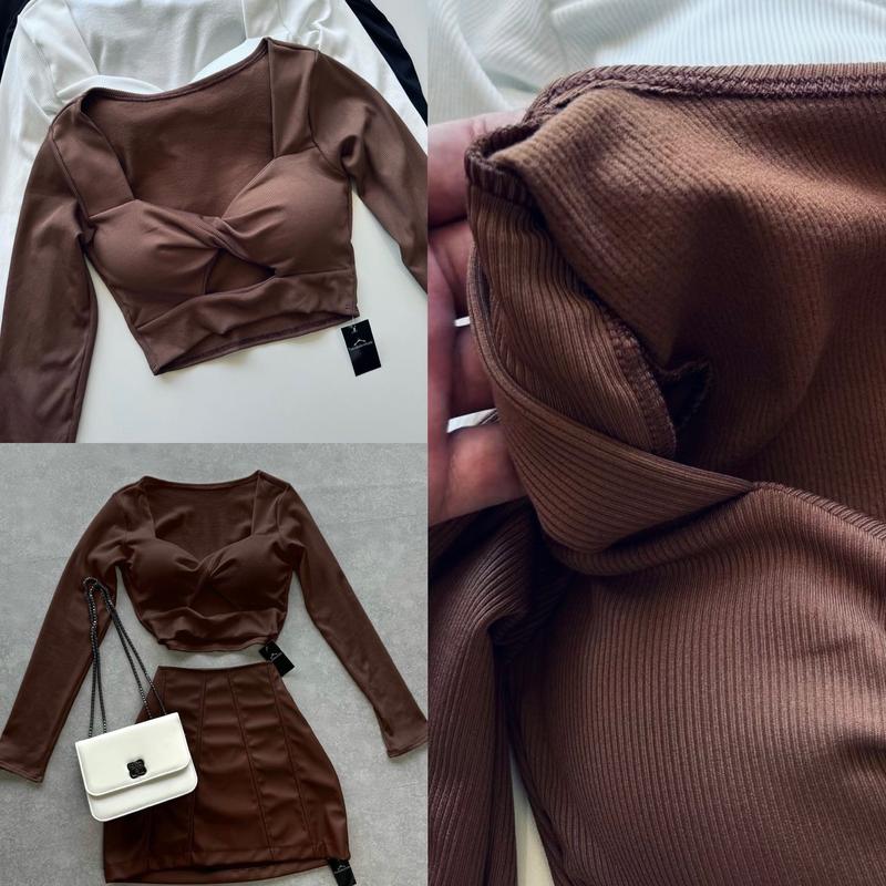 Кофтинка з плотними гарними чашками Тканина: щільний якісний рубчик , Туреччина Колір шоколад Розмір М Якісна та стильна кофтинка оригінального крою з чашками . Ідеально поєднується з будь-яким низом. Must have твого гардеробу