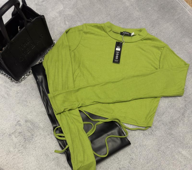 кофта вкорочена в оливковому кольорі з розрізами для пальця