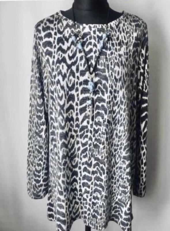 Лонгслив- туника нежная, серо - белый принт, округлый вырез, хорошо тянется, красиво сидит по фигуре, за счет удлиненных сторон выглядит оригинально. Фасон и состояние максимально показано на фото, украшение не в комплекте, размер вказано 16 (44), ориентируйтесь по замерам. Замеры: Длиж по центру спинки до низа -69, Длиж от плеча до низа по удлиненной стороне-79-80, ширина спинки по плечам - 39, плечо -9, длиннее рукава от плеча вниз -62, по рукаву по пройме -24, ш рукава по низу - 11, пог под проймами 52, бедер -58, по низа - 74, тянется, замеры выполнены в спокойном состоянии, если какой-то важный перемеряю, повёртывание не имеет, ответят на все вопросы, отправлю удобной вам по почте после оплаты на карточку Приват или Моно,безопасная оплата и накладной платёж с подпиской только по Новой почте, читайте раздел « про меня»
