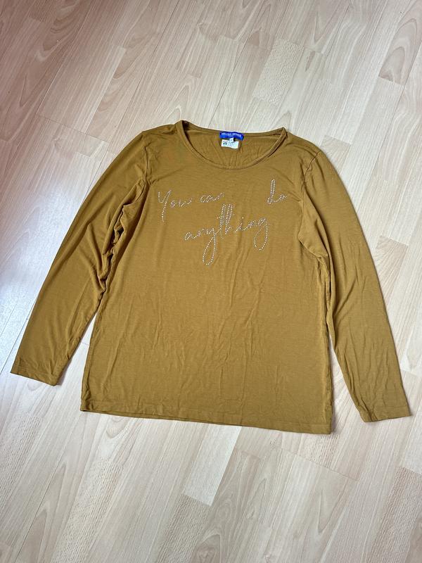 Цвет горчичный. Лонг без дефектов. Надпись «Ты можешь все». Тканина тягнеться. Длина 68 Рукав 62 Груди 52 Бедра 56