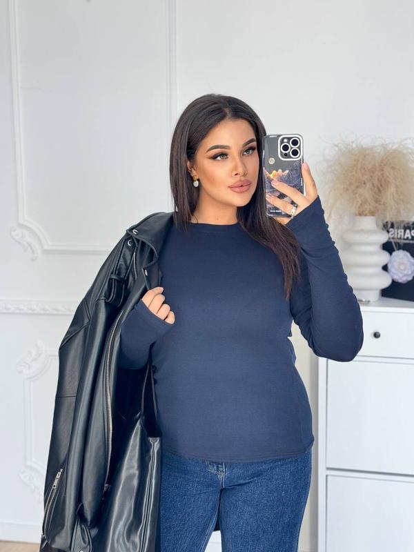 Базовый лонгслив выполнен из трикотажа с высоким содержанием хлопка. Очень качественный! Тепленький и приятный к телу✨ Модель имеет круглый вырез горловины и длинный рукав с вырезом для пальчика. Мод. 368 Размеры: 48-52 Цвет: темно-синий, молоко, красный Ткань: трикотаж высокого качества ✨ 48-52 ОГ і ОБ до 115 см. 54-58 ОГ и ОБ до 130 см. Длина 65-67 см.