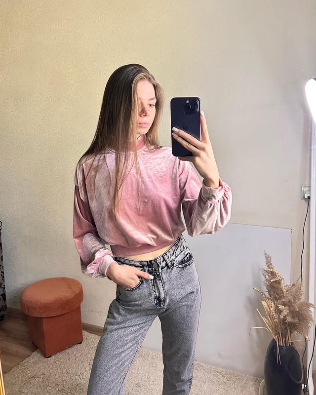 Великолепная розовая кофточка, очень приятная к телу, из велюра Снизу на широкой резинке Размер Xs-S По всем деталям и замерам в частные сообщения ( джинсы также в продаже )