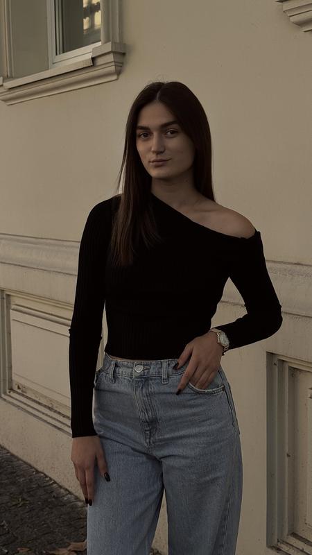 Тканина: машинна вʼязка Цвет: черный Размер: one size Цена: 1100грн Модель приталенного фасона выполнена из эластичной машинной вязки в рубчик. Асимметричная горловина спереди украшена дополнительной вставкой, которая вшита в проймы рукавов и создает модный акцент. Низ изделия прямой.