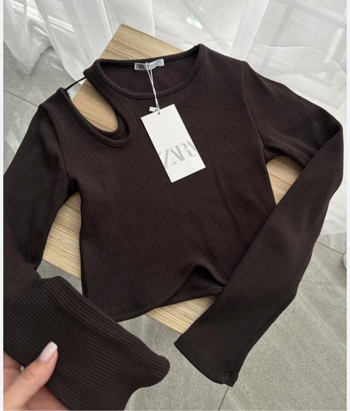 Чудовий топ з подовженими рукавами Розмір - S Має цікавий розріз на плечі Зроблений зі щільної тканини, доволі , навіть, теплий Трендового шоколадного кольору Хіт сезону Гарно підкреслює фігуру