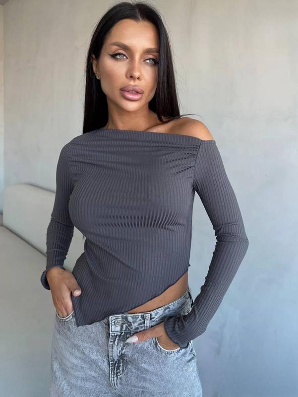 Лонгслив с открытым плечом – стильный выбор для любого сезона! 🌟 🔹 Цвет: графит 🖤 🔹 Размеры: 42/44, 46/48 📏 🔹 Ткань: рубчик – мягкая и приятная на ощупь, обеспечивает комфорт на каждый день 💫 Создайте элегантный образ с ноткой оригинальности, дополняя гардероб этим трендовым лонгсливом! ✨