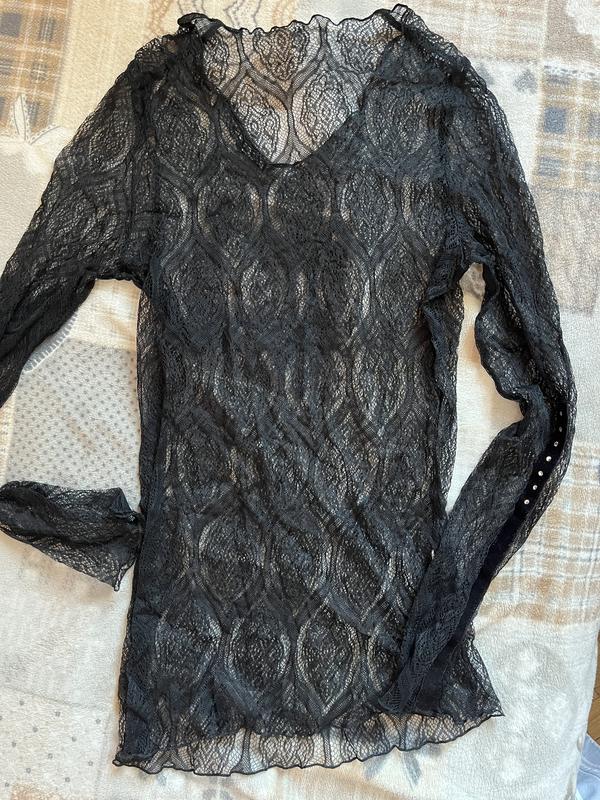 Очень красивая, можно сочетать с разной одеждой. Имеет украшение на рукаве, красиво тянется, в идеальном состоянии. Размер Xs-S