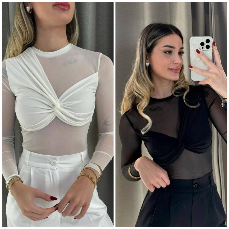 🔘Размеры - 42-44, 44-46 🔘Цвета - черный, белый 🔘Ткань - сетка + вискоза Кофтина с модным акцентом драпировки. Стильный и женственный, под любой образ.