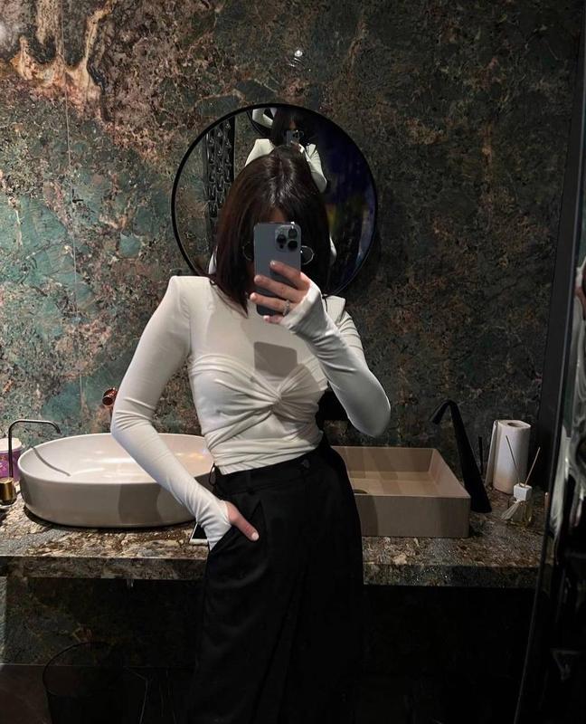 НОВИНКА🇺🇦 Снова в продаже💫💫💫 🔸Лонг с акцентным бра ▪️Модель: 1525 ▪️Ткань: плотный крепдайвинг ▪️Размер: 42-46 (one size) ▪️Цвет: черный, молоко, красный 🏷Цена 499 грн🔥 Супер качество по низкой цене🔥 💬Тренд сезона 2025🔝Стильный лонгслив с акцентным бра, который можножно моделировать по твоему желанию👍🏻 Плотная качественная ткань. Есть подплечники. На рукавчиках вырезы для пальчика. Очень дорого смотрится✨ ПАРАМЕТРИ (добре тягнеться): ОГ 87-96 см Длина 50