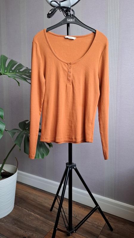 Лонгслів в рубчик TU Склад - 95 % бавовна, 5 % еластан Розмір - 10 ПОГ- 43 см, тканина тягнеться Довжина - 58 см Низ - 41 см Плечі - 36 см Рукав - 60 см