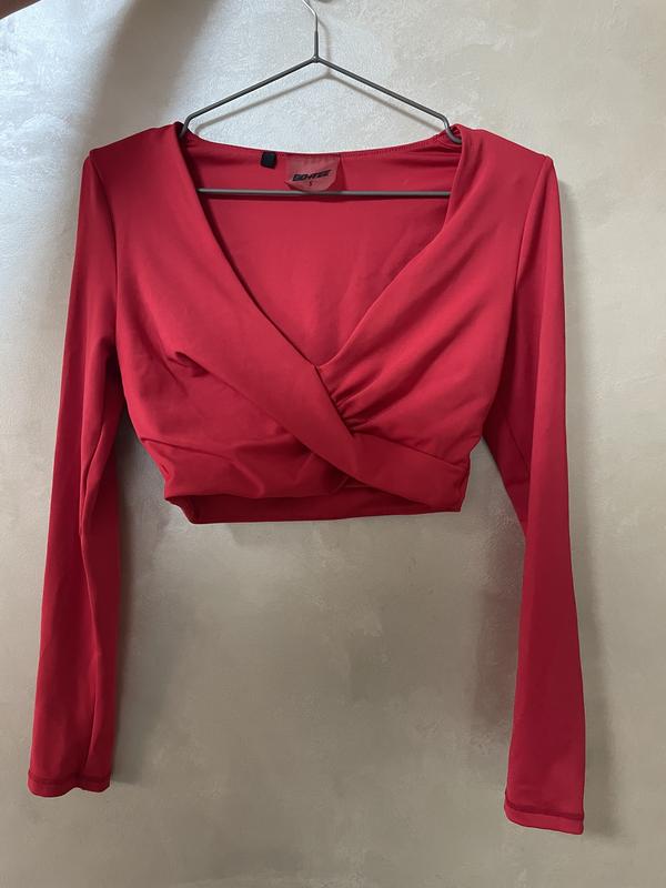 Червоний вкорочений топ, підкреслює фігуру, не підійшов розмір