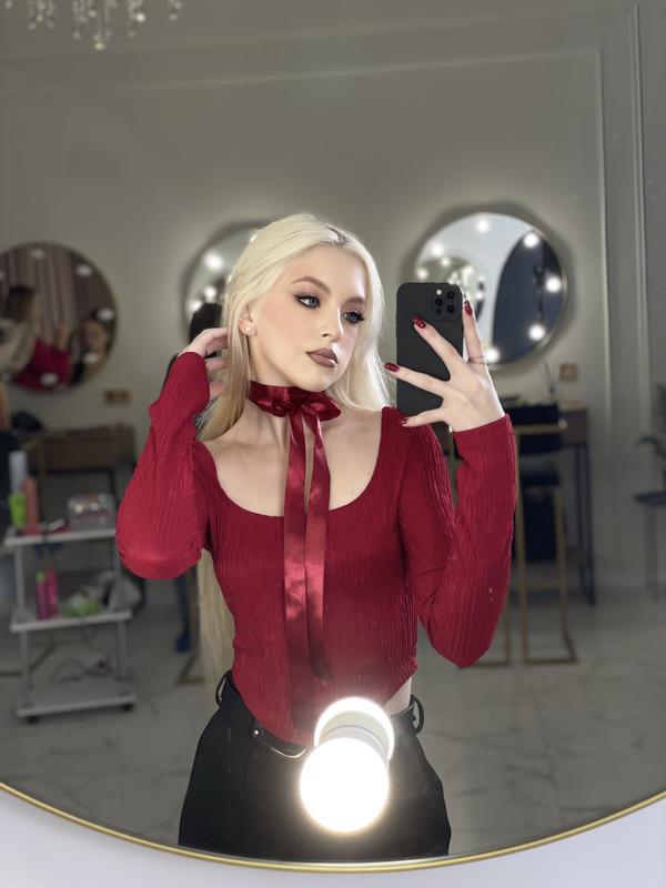 Красная/бордо кофточка с большим вырезом, ткань легкая, хорошо тянется, чуточку сверкает на свету, размер S, одета всего раз, состояние идеально