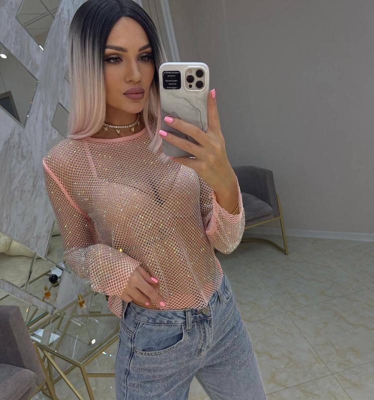 👆Крутезна кофта-сітка з камінням Код 7787 Розмір універсальний XS/S/M Колір - рожевий Стрази хамелеон 🌈нереального кольору Основа м‘яка стрейчева сітка. Фабричний Китай Люкс якість🇨🇳 ---------------- 🌹Заміри : Довжина по спинці 49см, довжина рукава 63см, груди напівобсяг в спокійному стані 44см +  тягнеться.
