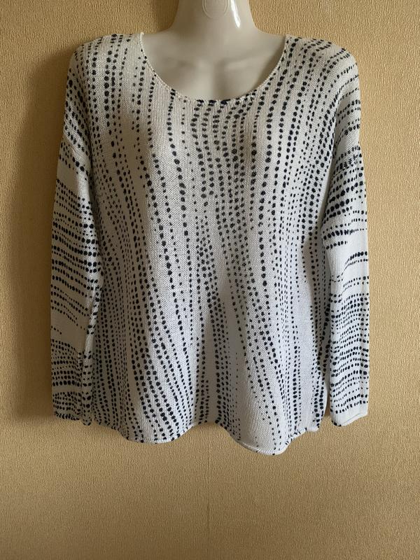 Размер по бирке М, замеры: длина 54, ПОГ 53, плечи спущены 57, рукав 42; низ 51 см. Состав: 40% line, 35% cotton, 25% nylon.