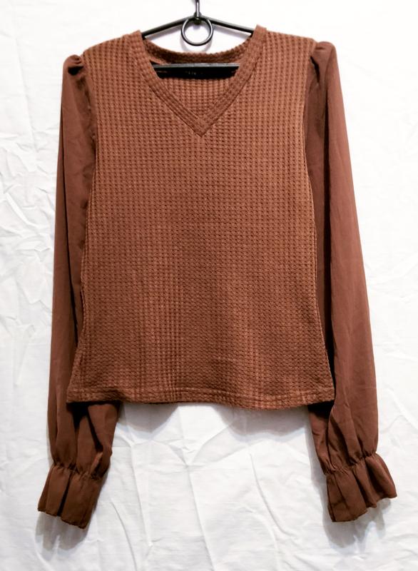 Очень интересная блузка лонгслив. Рукава широкие из полупрозрачной ткани с манжетами на тонкой резинке. я размер S. Стан идеален 👗Еще больше одежды в новом и идеальном состоянии по отличной цене на моей странице. Переходи и не забудь подписаться, чтобы быть в курсе обновлений и разбруждений🤗