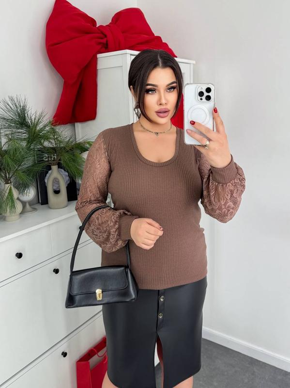 Стильный лонгслив #1427 Незаменимая вещь гардеробы у каждой красавицы Размер: 48-52,54-58 Ткань: Рубчик мустанг приятный к телу, рукава турецкий гипюр Цвет: капучино, белый и Черный однотон Уход: ручная стирка до 30° Производитель: Украина _________________________ тянется до 20см Замеры 48-52 Ог 112 тянется до 124, длина 67см, длина рукава 72 54-58 Ог 122 тянется до 140 см, длина 72 см, рукав 74см На модели 48-52, рост 170 см Параметри Ог 110 от 85 об 112