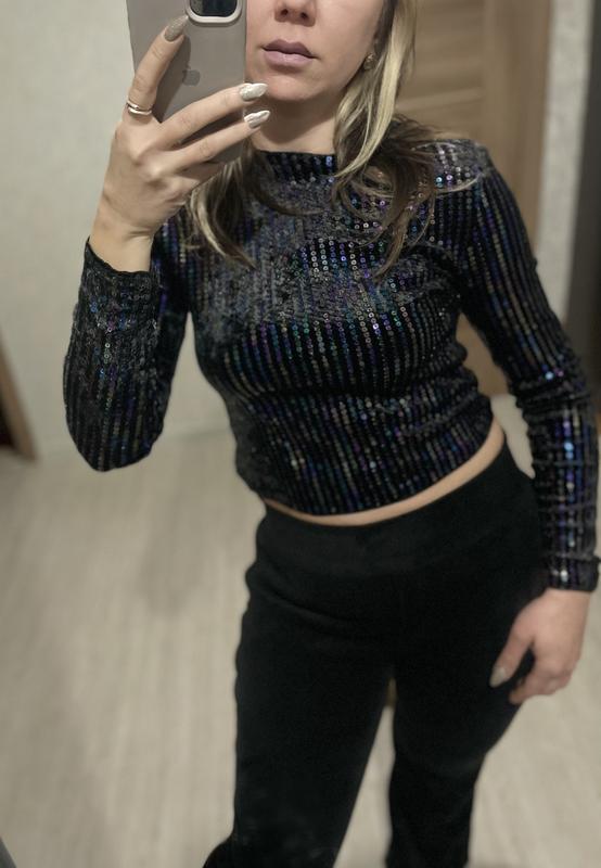 Велюровая очень красивая кофточка в пайетках Размер S Длина 46см Ширина 39 Рукав 56см