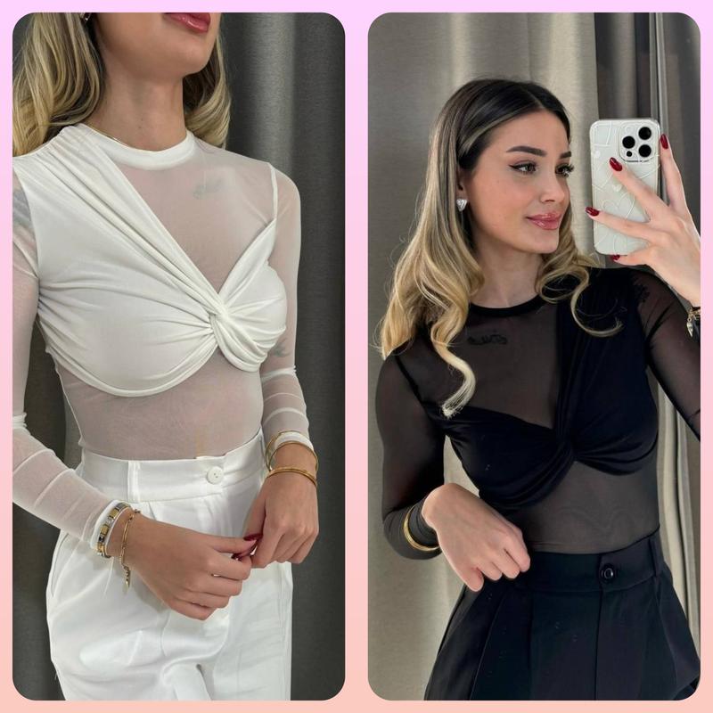 Лонгслив 🔘Мод 1036 🔘Размеры - 42-44, 44-46 🔘Цвета - черный, белый 🔘Ткань - сетка + вискоза Кофтина с модным акцентом драпировки. Стильный и женственный, под любой образ.