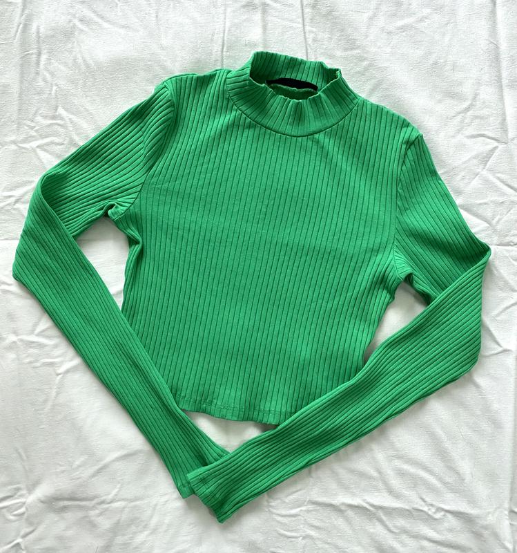 Вкорочений лонг в рубчик, тонкий. Добре тягнеться. Колір яскравий холодний зелений. Розмір М В ідеальному стані, жодного разу не одягався.