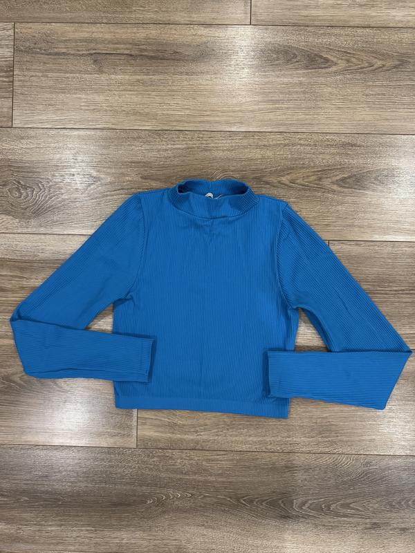 Лонгслив яркого сине-голубого цвета В рубчик, приємна тканина