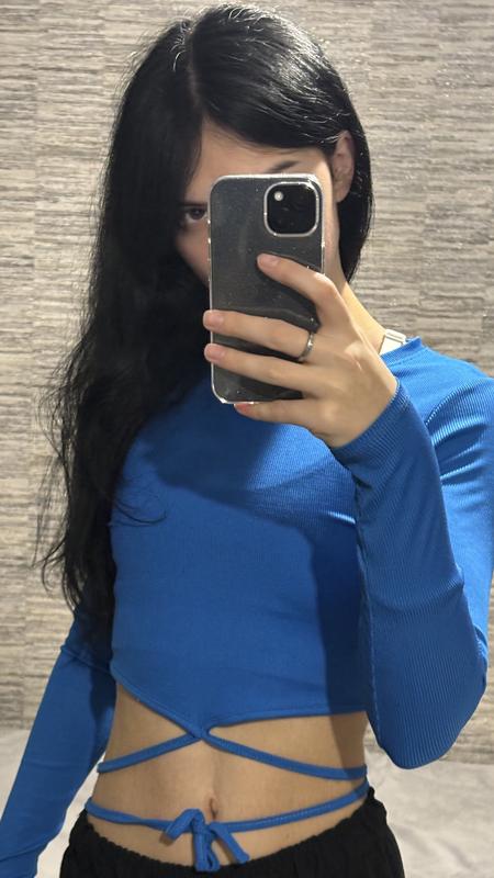 Ярко синий кроп-топ с рукавами и завязками Размер М