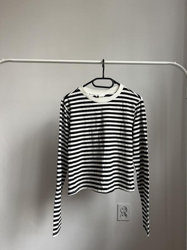 Стильный лонгслив в полоску Натуральная ткань, приятная к телу Плечевой шов спущен Стан нова Замеры Длина-51 П.о.г-46 Рукав-64