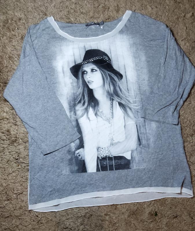 Лонгслив серого цвета с принтом На спине тонкий полупрозрачный материал Размер L