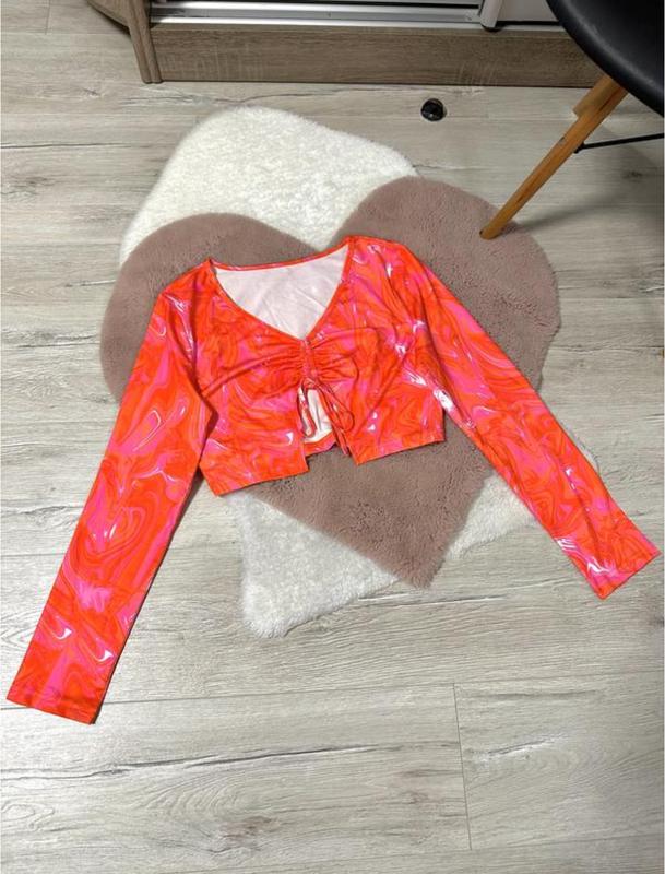 топ с затяжкой. состояние идеальное. длина- 38см; ширина под руками- 47см; длина рукава- 62см
