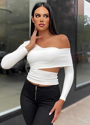 Топ асимметрия. Ткань мягкая, хорошо тянется. Цвета: белый, черный Размер S : объем груди 82-90 см Есть обмен и возврат