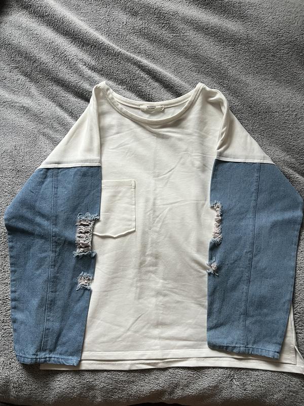 Белый лонг с джинсовыми рукавами