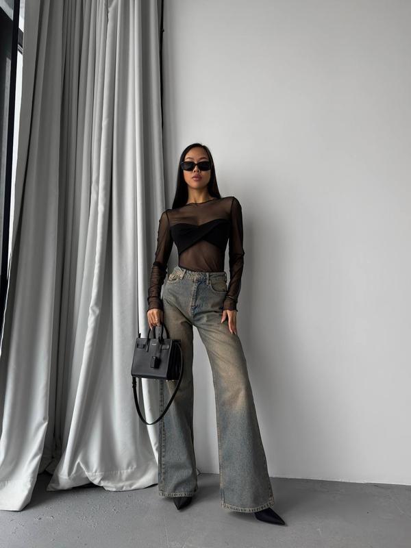 Лонгслив Ткань - стрейч сетка + вискоза Размеры - 42-46 Цвета - черный Цена: 899 грн