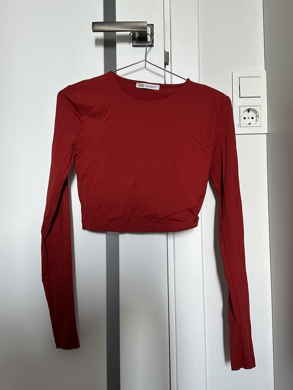 Укороченный лонгслив красного цвета в идеальном состоянии