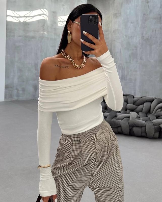 Новинка😍 Кофтинка Размеры: 42-44, 46-48 Цвета: черный, белый Ткань: микродайвинг Базовые кофточки, которые идеально садятся на теле, как вторая кожа😍 Открытые плечи❤️ Дополняй любой свой образ стильными цветами🖤