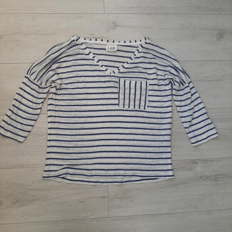 Лонгслив / легкая кофточка из льна бренду LAB цвет белый в синюю полоску спущенный крой плеча, оверсайз бирки со составом нет ткань просвечивает размер ориентально М-Л, на М сидит свободно, оверсайз замеры: Плечи - Пог 52 Длина 58 Рукав от горла 48 ❗возврат не предусмотрен ❗Подписывайтесь 🌱заходите на мою страницу, в наличии есть другие вещи, Создаю обновление! 🍃делают скидки, распродажи