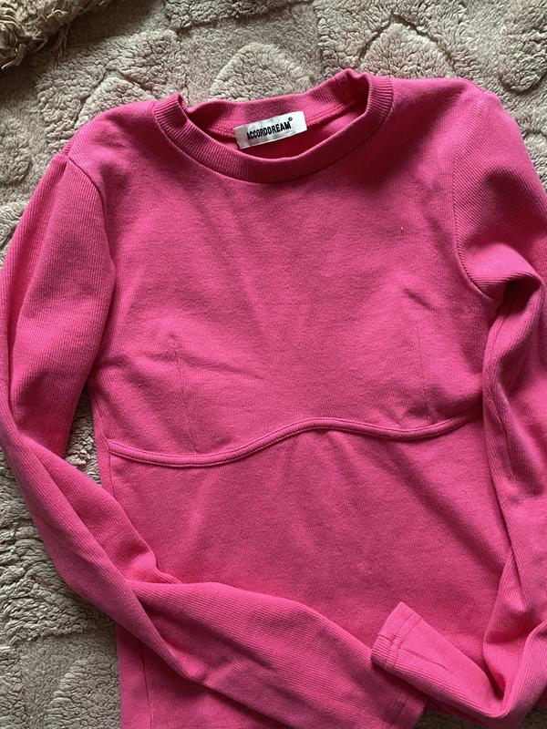 💖 Розовый лонгслив в рубчик - идеальное сочетание стиля и комфорта! Минималистичный, без лишних деталей, легко комбинируется с джинсами, юбками или брюками. Размер: S/M *Выглядит ярче, чем на фото