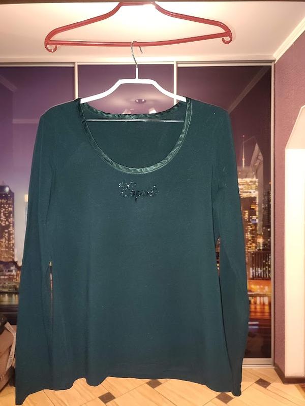 Кофточка очень классная, смотрится очень эффектно! В реальности выглядит на много красивее, насыщенный чётный цвет, камера этого не передаёт. Она очень качественная, стрейч-коттон, приятная к телу, в ней очень комфортно и уютно. Она в очень хорошем состоянии, без дефектов, цвет чёрный, камера искажает этот цвет. Рекомендую на 48-50 размер, ориентируйтесь на мои замеры : ПОГ- 48-52, ПОТ- 44-46, длина - 60, рукав - 62. Оплата на карточку приватбанка, отправка любым почтовым перевозчиком. Никаких других способов пересылки и оплаты нет. Перед покупкой уточняйте наличие и условия пересылки.