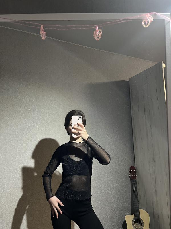 Сетка с блестками. Стан идеален. Замеры: рукава-54 см, грудь-64 см хорошо тянется, длина-48 см.