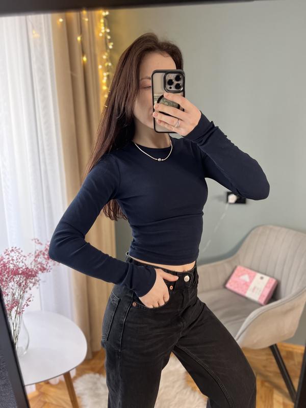 Темно синя кофта Bershka - Размер S. - Состав: хлопок и эластан. - Стан нового, без дефектов. Мои настройки на фото: 83-62-90