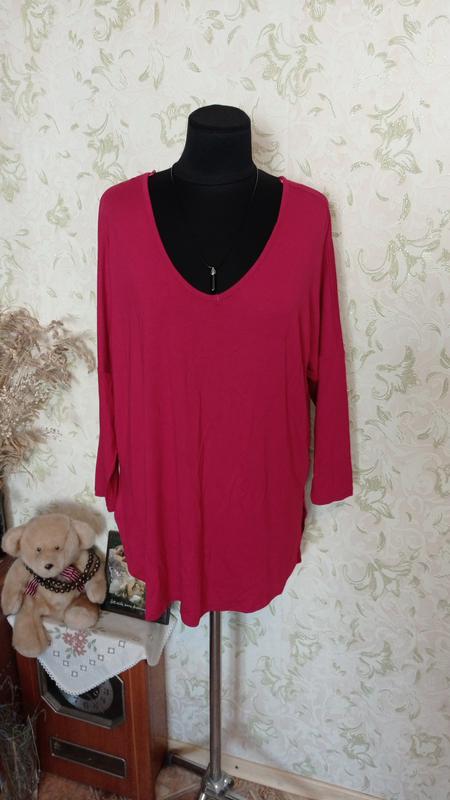 Ширина под мышками 60 см, полу ОТ 55 см, полу ОБ 55 см, длина по спине 75 см, плечи приспущенные 78 см, рукав 27,5 см, цвет малиновый, не передаёт фото.