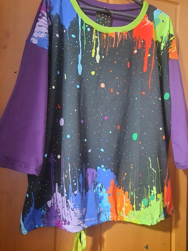 довжина 70см рукава від горловини 55см ПОГ 66см ПОБ 67см 92% віскоза 8% еластан-трикотаж натур.,не мнеться.не парить спинка фіолетова,а принт якісний турецький цифровий друк