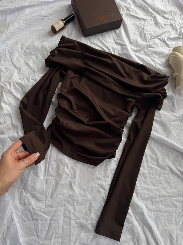 Ідеальний лонгслів для створення ваших образів 🫶🏽 💸Ціна: 899 грн 🔹Тканина: Мікродайвінг Туреччина 🔹Розміри: 42 - 46 🔹Колір: Шоколад , Чорний Лонгслів з відкритими плечима та витонченою драпіровкою вздовж плечей та боків. Тканина дуже м’яка, еластична та приємна до тіла.