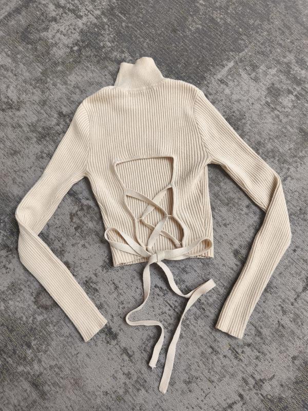Кроп топ лонгслив в рубчик с красивой спинкой