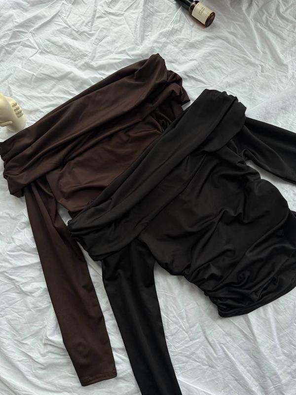 Идеальный лонгслив для создания ваших образов 🫶🏽 Модель: aa 116 💸Цена: 679 грн💳 🔹Ткань: Микродайвинг Турция 🔹Размеры: 42 - 46 🔹Цвет: Шоколад, Черный Лонгслив с открытыми плечами и изящной драпировкой вдоль плеч и боков. Ткань очень мягкая, эластичная и приятная к телу🤎