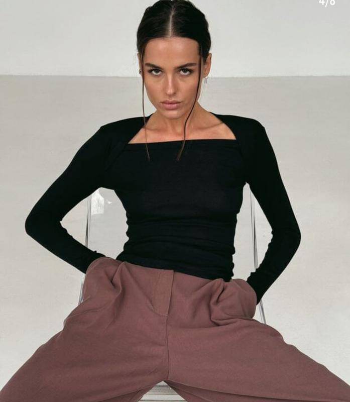 Лонгслив черный с красивой отделкой спереди. Стильный и удобный. Мягкая качественная ткань, красивое лекало, отлично садится по фигуре. Размер xs. В наличии. Отправки каждый день