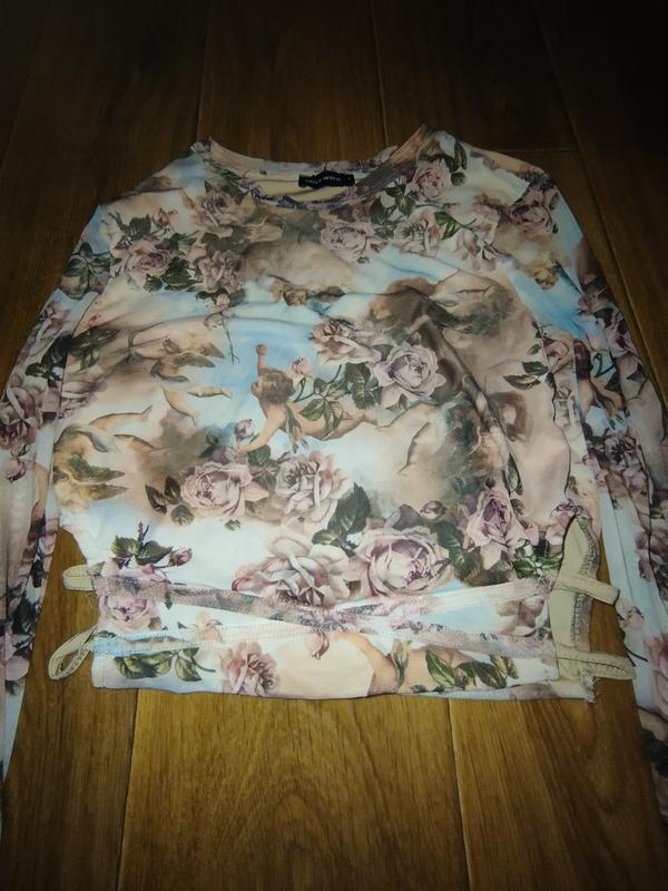 Лонгслив с принтом, ткань очень легкая, на теле есть подкладка, на рукавах подкладки нет поэтому рукава слегка просвечивают Бренд Tally Weijl Размер М