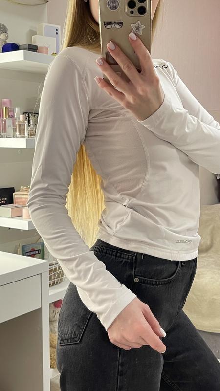 Білий спортивний лонгслів. Дуже зручний, з сіточкою, внизу резинка, стан ідеальний. На розмір S