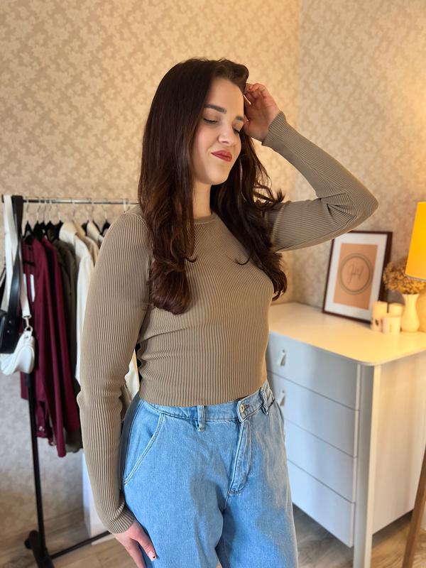 Вкорочений лонгслів Stradivarius кофейного кольору з відкритою спиною, доступний у розмірах: XS, S, M. Ціна - 599 грн. Безкоштовна доставка по місту Мукачеву, відправка по Україні за тарифами перевізників.