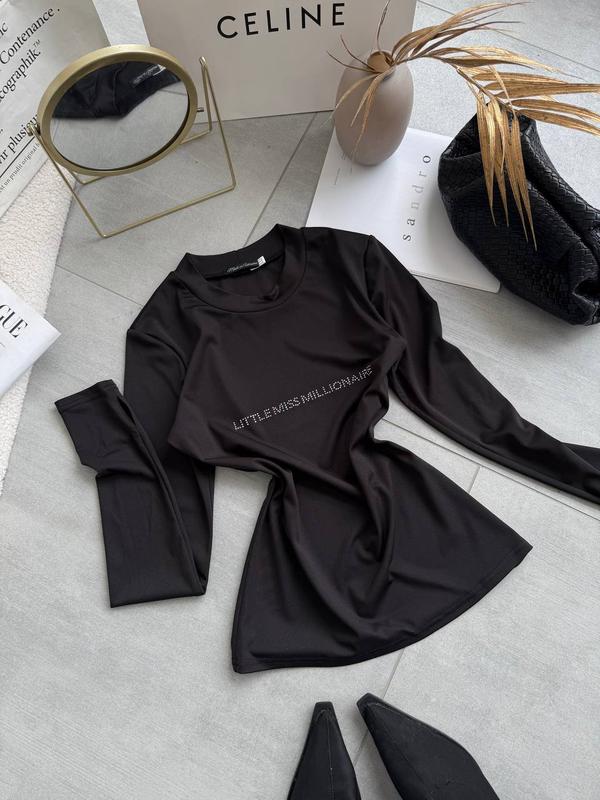 🌟НОВИНКА🌟 Стильный лонгслив с камушками “LITTLE MISS MILLIONAIRE” с вырезом под пальчик 🌟 Модель: 563 Ткань: микродайвинг Цвета: розовый, черный, мокко, красный, белый и серый Размеры: 42/44 и 46/48 Цена: 600 грн алиос