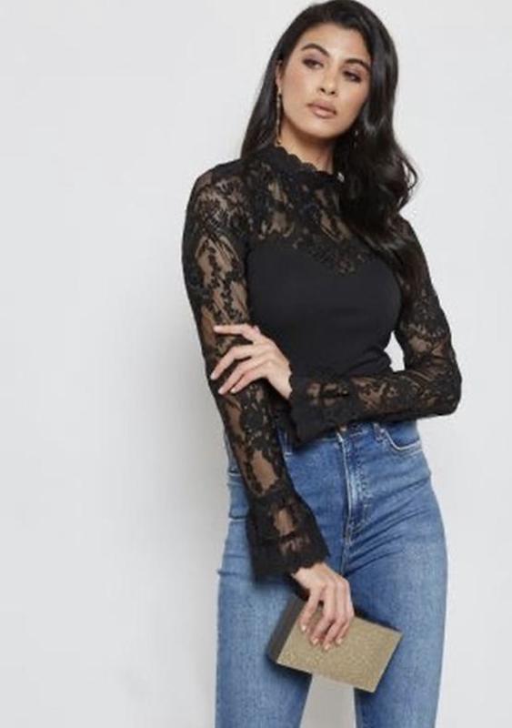 Черный Приталенный лонгслив в рубчик без швов Насыщенный цвет в сочетании с мягким кружевом 💓 Без дефектов Красиво тянется Бирки отсутствуют, на с / м
